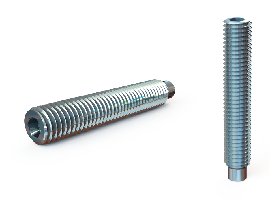 - DIN 915. Стержень с цапфой и углублением под шестигранный ключ. Изделие имеет резьбу М3-М24, может покрываться цинком.