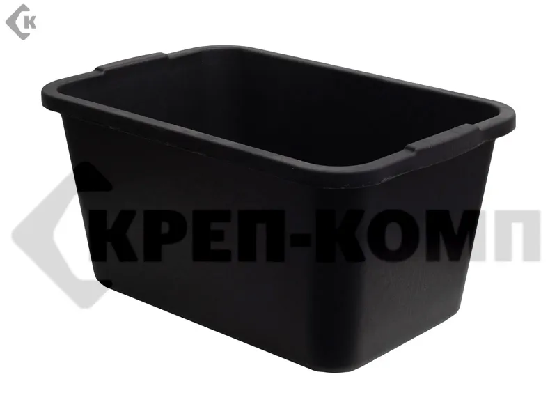 Емкость резинопласт прямоугольная 40л, изготовлена из пластмассы повышенной прочности, используется при проведении строительных и отделочных работ.