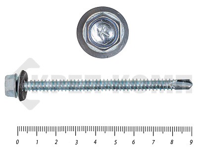 Саморез кровельный цинк, с шайбой EPDM, 6,3х 76 К КРЕП-КОМП (1000шт)