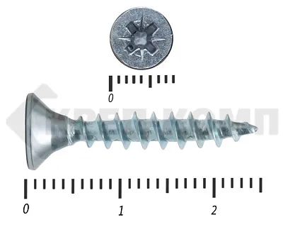 • Pz («Позидрив») – у желтых и белых универсальных саморезов. Размер шлица (№1, №2 или №3) зависит от диаметра головки. Чем больше размер крепежа – тем больше шлиц под крестовую отвертку или биту-насадку для шуруповерта;