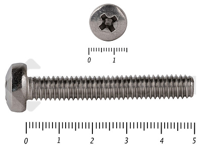 Винт с полукруглой головкой - это стальной стержень с полной метрической резьбой. Существует два варианта исполнения - с прямым шлицем и с крестообразным. Полукруглая головка обеспечивает лёгкий захват простой отверткой.